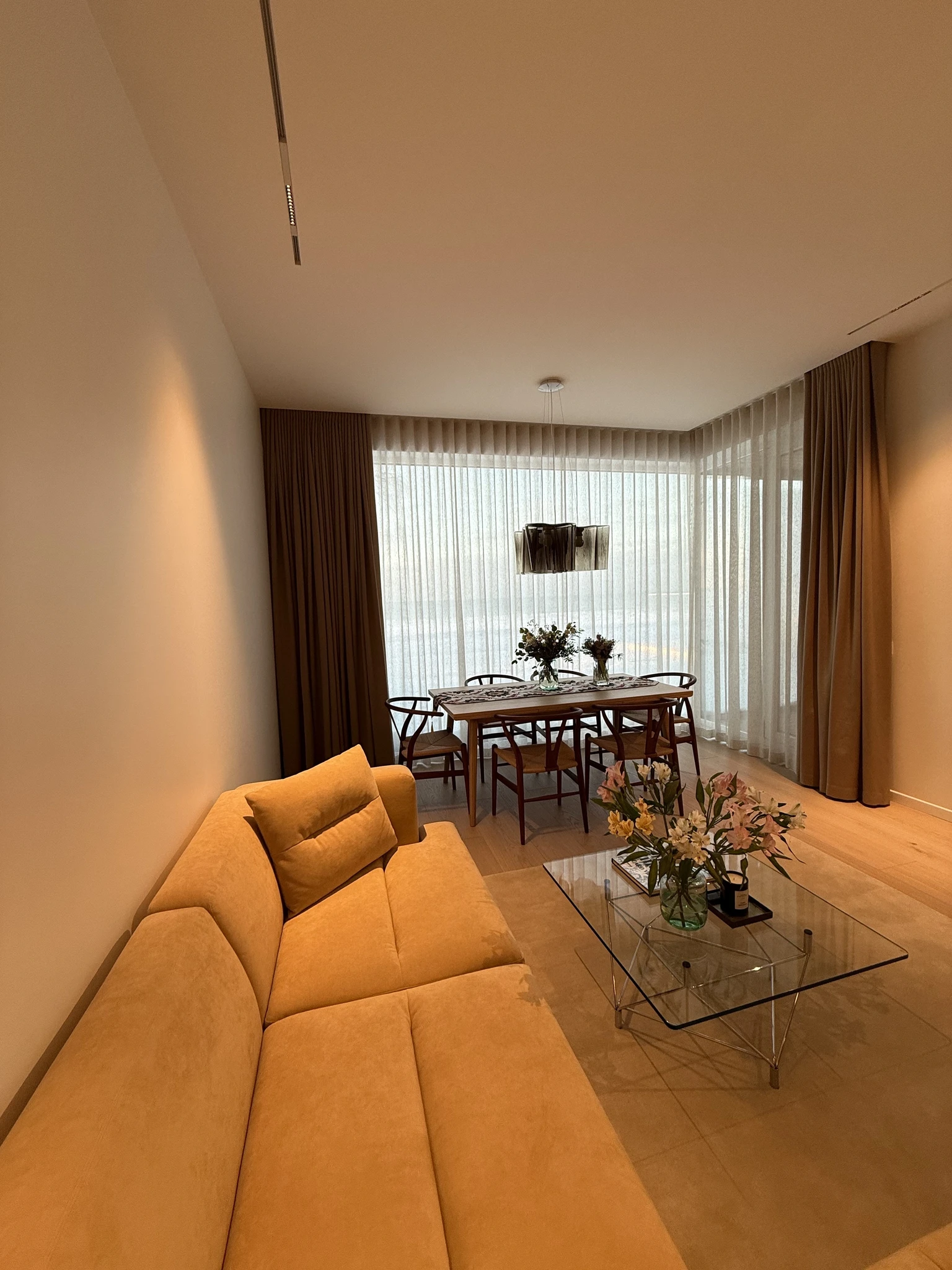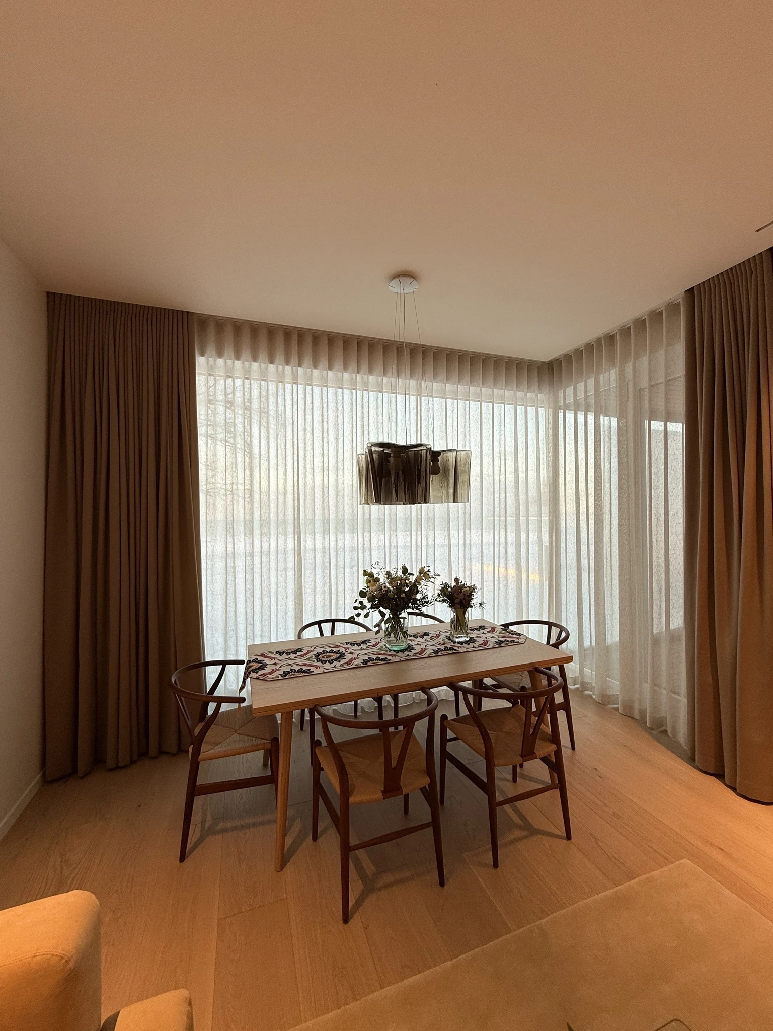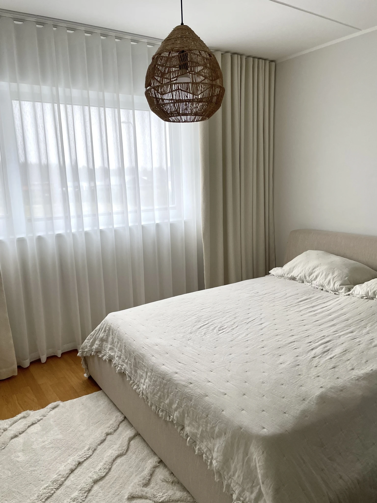 Ülipõnev suurprojekt, kus kasutasime luksuslikke kangaid ja põnevaid kardinalahendusi. Elutoas valmis iga akna ette nii roomakardin kui ka võrktüll kangast õhukesed kardinad. Mulje jäi suursugune ja ajatu. Magamistubades kasutasime luksuslikke põnevate struktuuridega kangaid.Suurprojekt Tallinnas