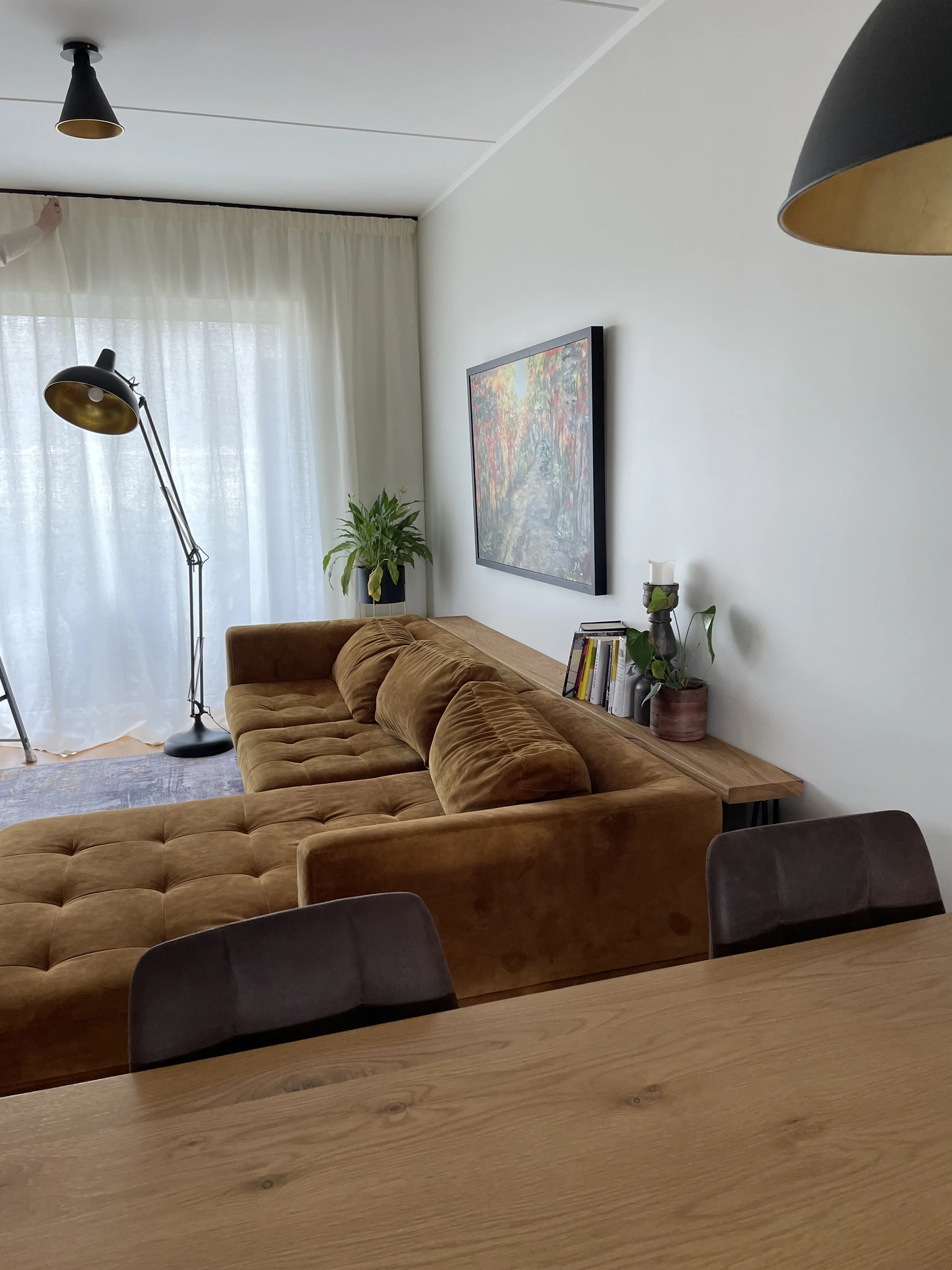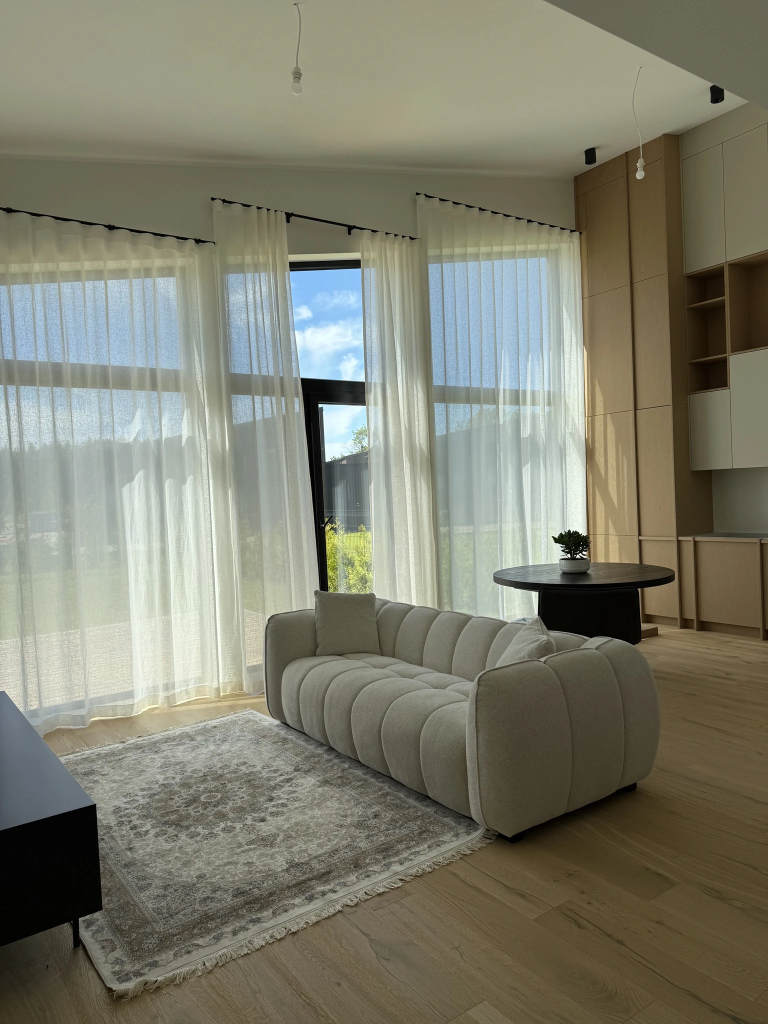 Armsa noore pere kodusisustus lähtub naturaalsusest ja loomulikkusest. Keila projekti suurimaks väljakutseks oli elutoa viltune lagi, mis kõrgus 3,6 kuni 4,4 meetri kõrgusel. Otsustasime elutoas eksklusiivsete musta värvi prantsuse kardinasiinide kasuks, mis raamivad elutoa aknad ja kannavad olulise disainielemendi rolli. Kardinapuud paigutasime iga akna kohale seinale erineval kõrgusel, optiliselt tekitasime nö sirgema lae. Kangavalikuks osutus elutoas naturaalne loodusvalge klassikaline linane kangas. Magamistoas kasutasime tüllkardinal struktuurset prantsuse linast kangast ja külgkardina kangaks valisime inglise puuvillasegu kardinakanga koos pimendava voodriga.Eramu Tallinnas