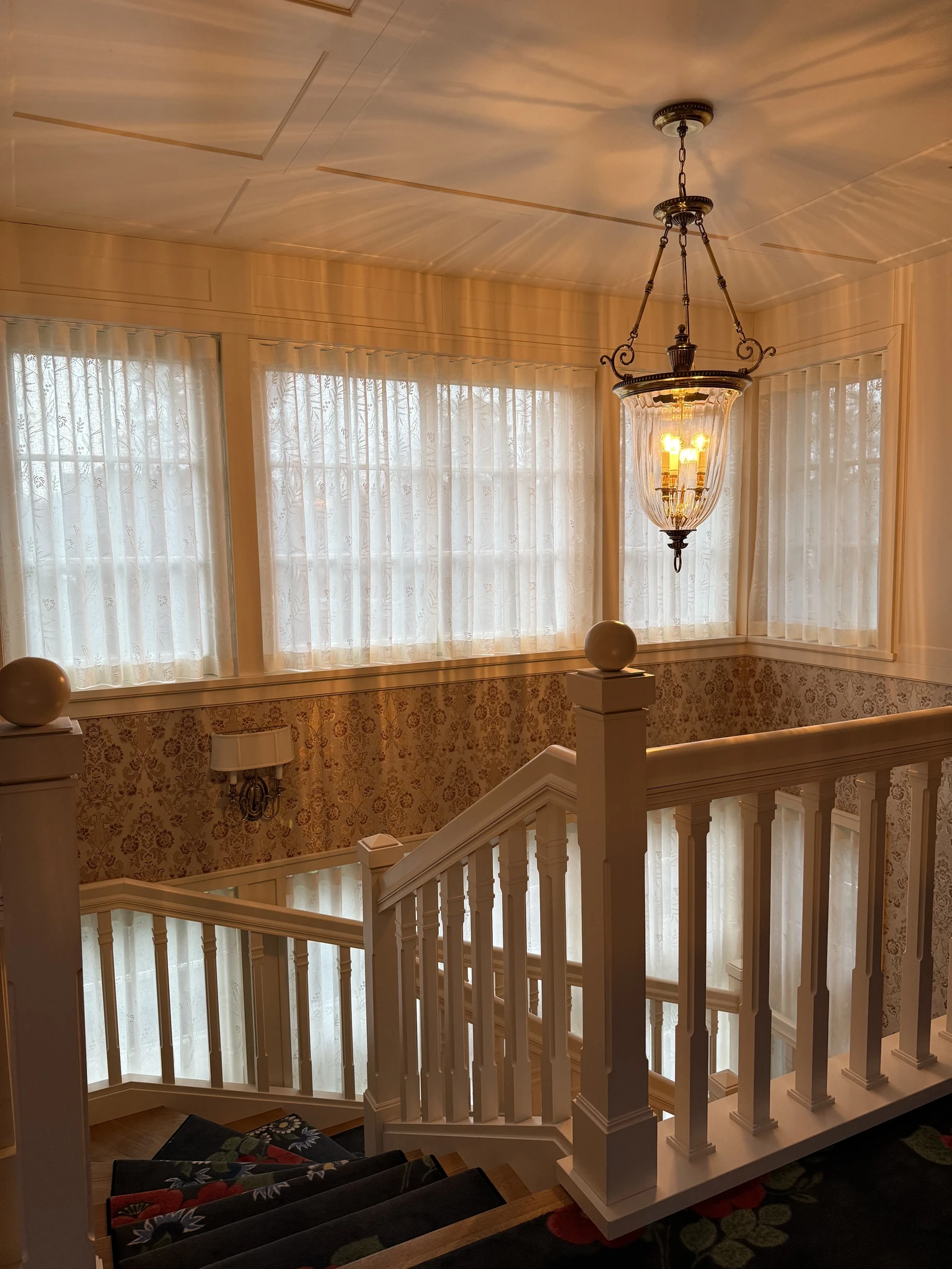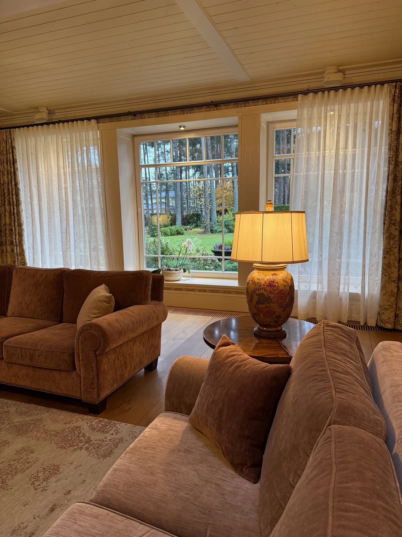 Suurprojekt Tallinnas, kus kasutasime ekslusiivseid prantsuse ja hollandi kangaid. Elutoa ja söögitoa terviku rõhutamiseks katsime aknad prantsuse võrktülliga, mis loob luksusliku meeleolu, aga lubab loomuliku valguse ruumi ja ka vaadet nautida. Magamistubades seevastu kasutasime suuremustrilisi värvilisi julgeid kangaid. Suurimaks väljakutseks oli läbi kolme korruse olev trepihall, kuhu valmisid 9 meetrised paneelkardinad.Eramu Luigel